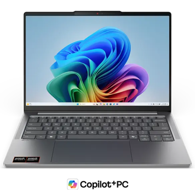 Top front view, with a Copilot+ logo beneath it, of the Lenovo IdeaPad Pro 5a Gen 11 (14” AMD).img