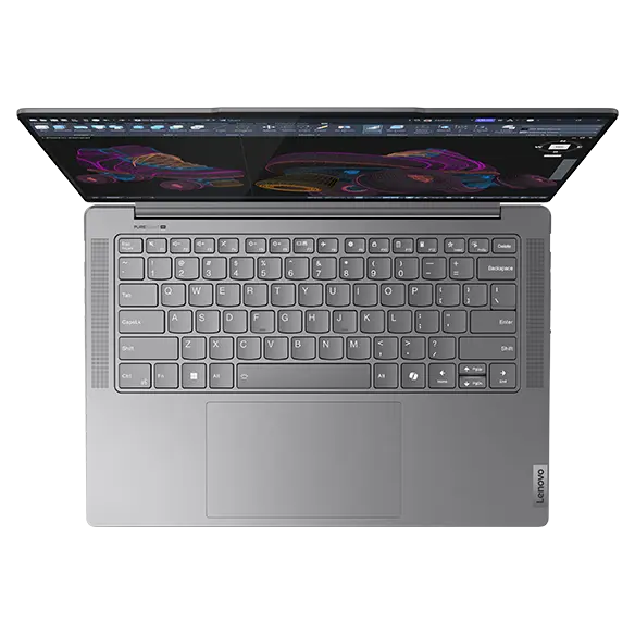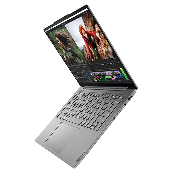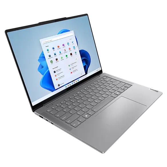Yoga Pro 7 Gen 9 (14″ AMD) in Luna Grey front-facing, open with display turned on