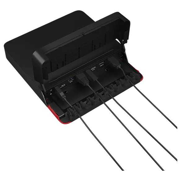 Side view of Lenovo ThinkSmart Core Full Kit with IP Controller for Teams components: ThinkSmart Core for Microsoft Teams Rooms computing device, Lenovo IP Controller, Lenovo Link Box, ThinkSmart Cam, ThinkSmart Bar, standalone mic pod, & Lenovo Link Box