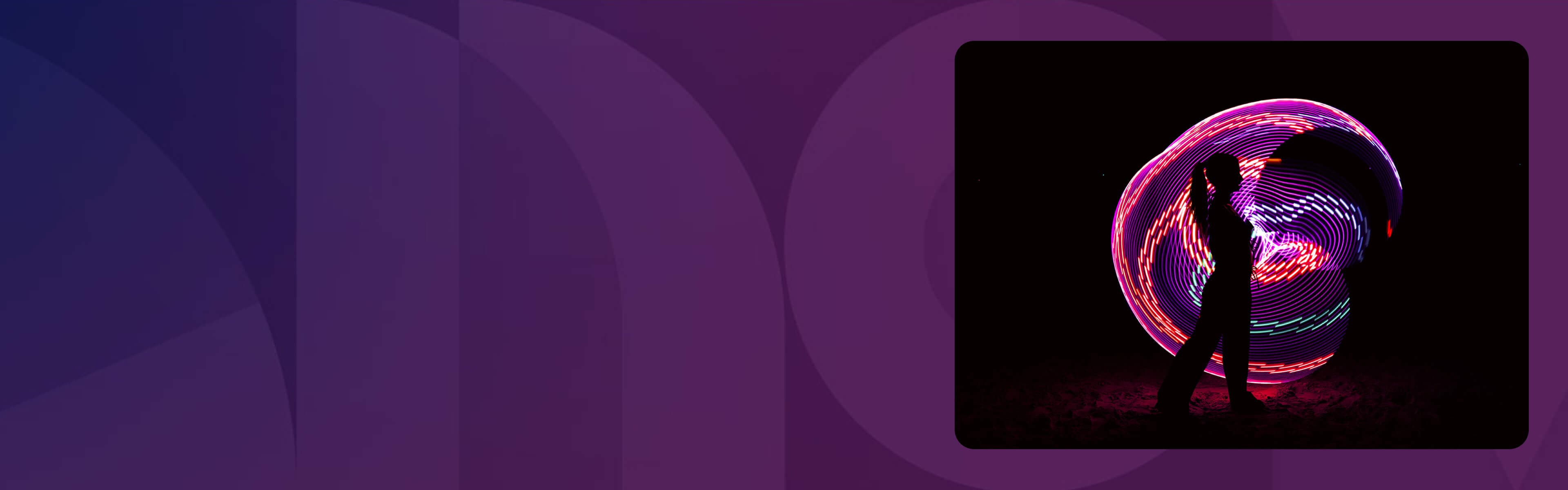 A silhouette of a woman in front of purple and red swirling lights.