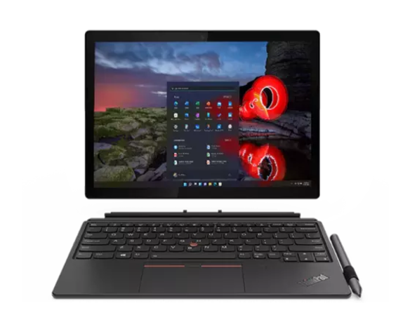 Lenovo ThinkPad X12 Detachable tablet with optional keyboard / pen detached, facing front.