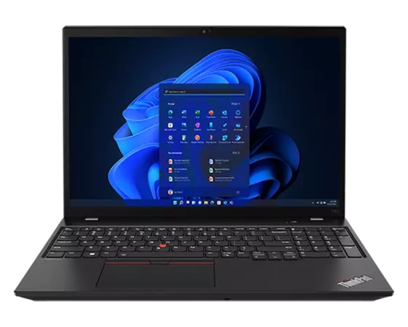 Front facing ThinkPad P16s (16" AMD) mobile workstation, opened, showing keyboard and display with Windows 11