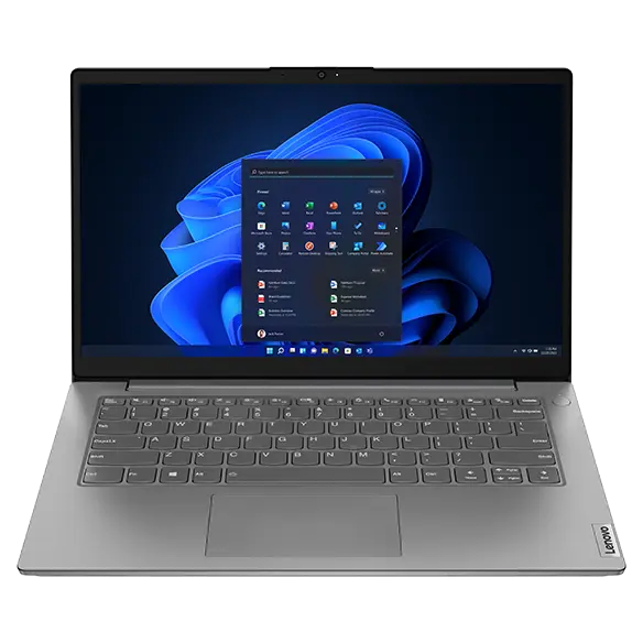 Front-facing Lenovo V14 Gen 2 (14" Intel) laptop with Windows 11 Pro on the display.