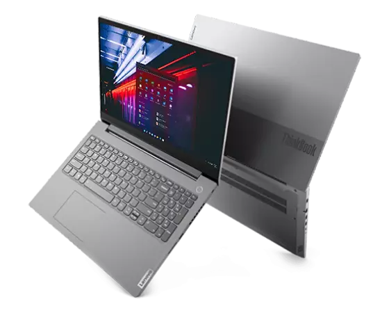 Two back-to-back Lenovo ThinkBook 15p laptops in right three-quarter view