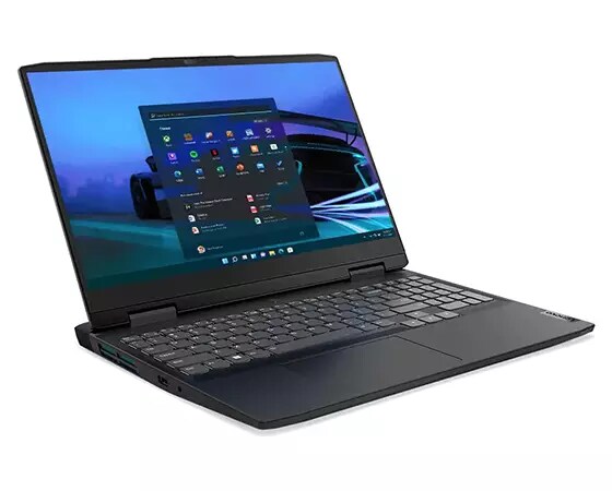 IdeaPad Gaming 3i Gen 7 front facing left, Windows 11 on screen