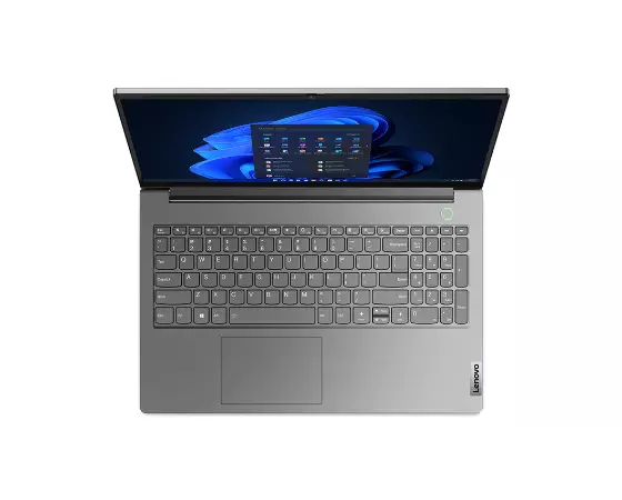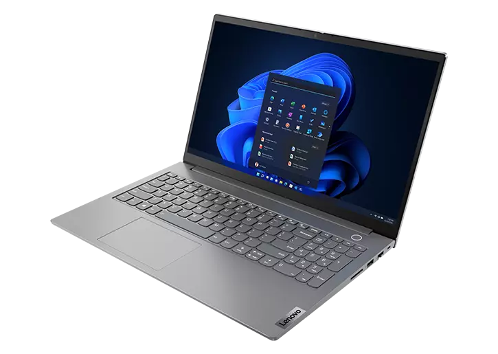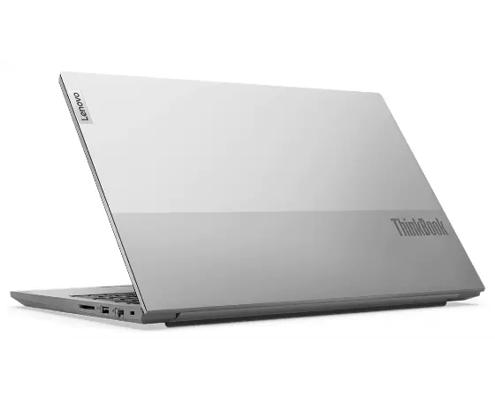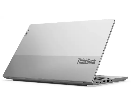 Vista frontal del lateral derecho del portátil Lenovo ThinkBook 15 de 4.ª generación [38,1 cm (15" ),  amd] visible tres cuartos con la tapa abierta