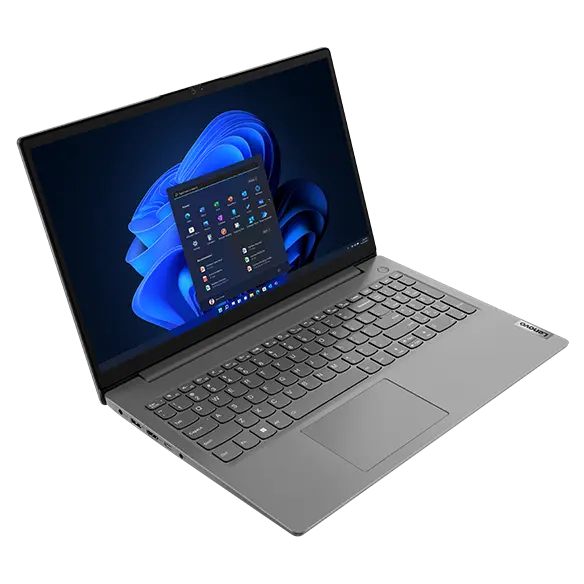 Front facing Lenovo V15 Gen 3 (15" Intel) laptop, opened 90 degrees, showing keyboard and display with Windows 11