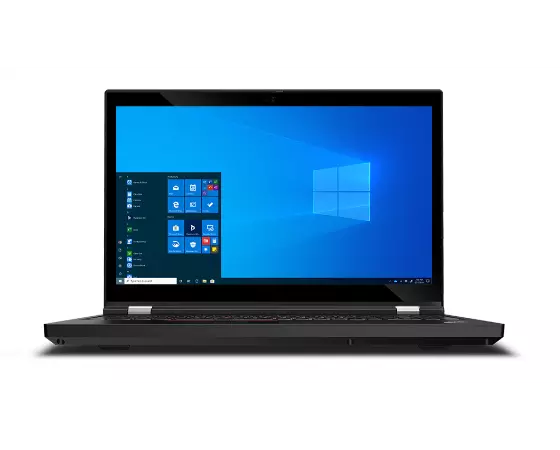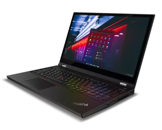 Right front angle view, showing display, keyboard, and trackpad, of the ThinkPad T15g.