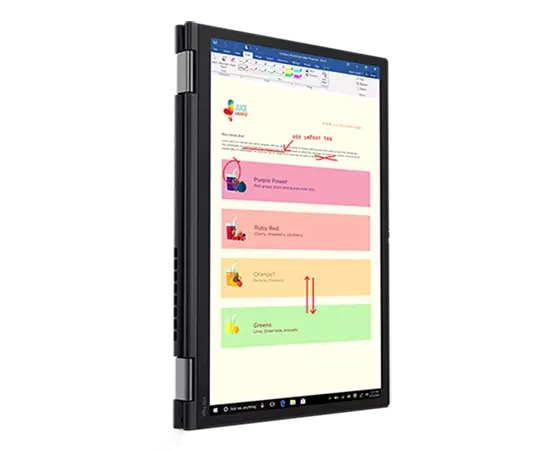 ThinkPad X13 Yoga Gen (13” Intel) laptop – ¾ front/left view, in stand mode