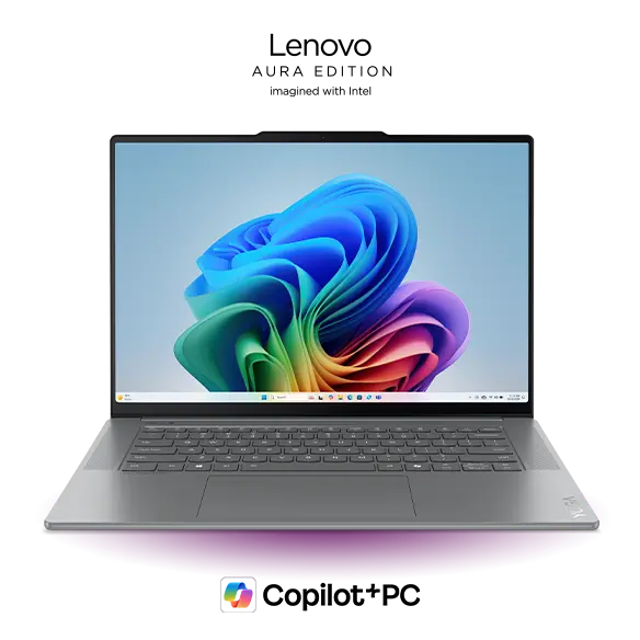 Front view of an opened Yoga Slim 7i Gen 9 Aura Edition (15″ Intel).