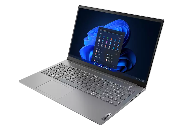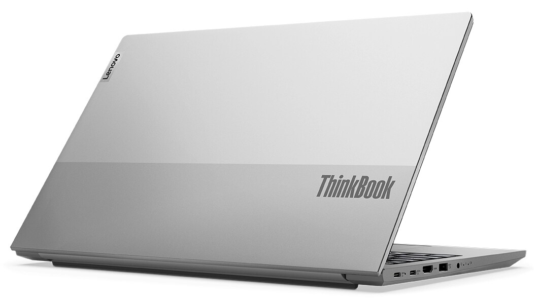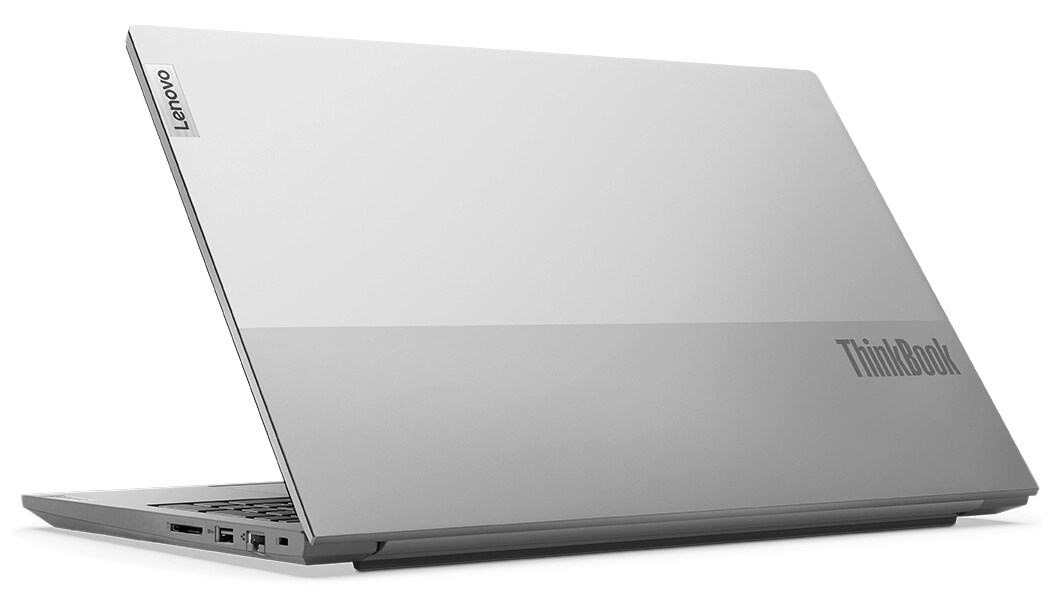 Lenovo ThinkBook 15 Gen 5 laptop open 90 degrees, slightly angled to show right side ports.