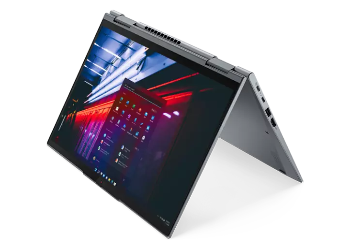 Lenovo ThinkPad X1 Yoga Gen 7 2-in-1 laptop in tent mode.
