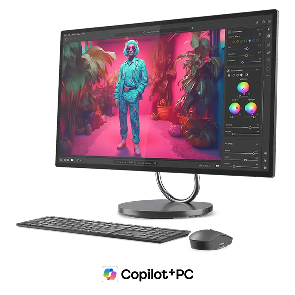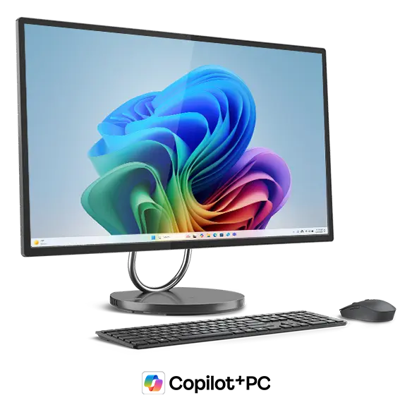 Front view of Lenovo Yoga AIO 32i Gen 10 (32” Intel) PC with wireless keyboard & mouse that comes with AI-enabled features to cater to your modern needs.