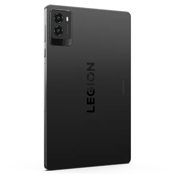 Legion Tab Gen 3 standing vertically front facing right with the Legion logo on the screen.