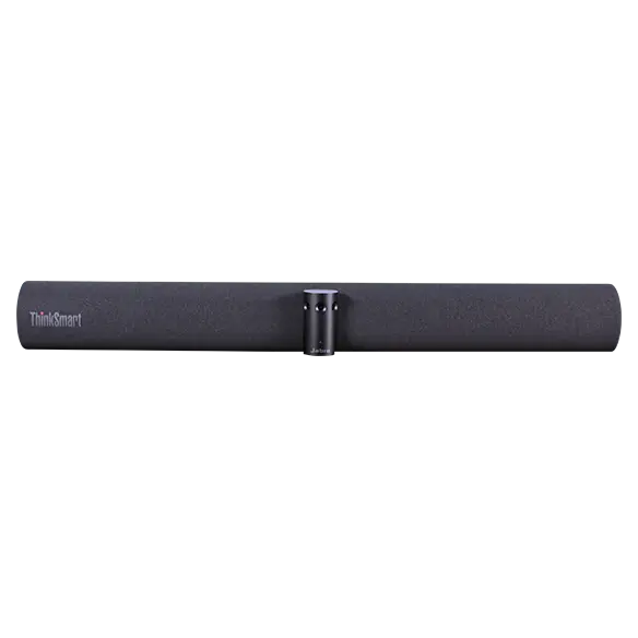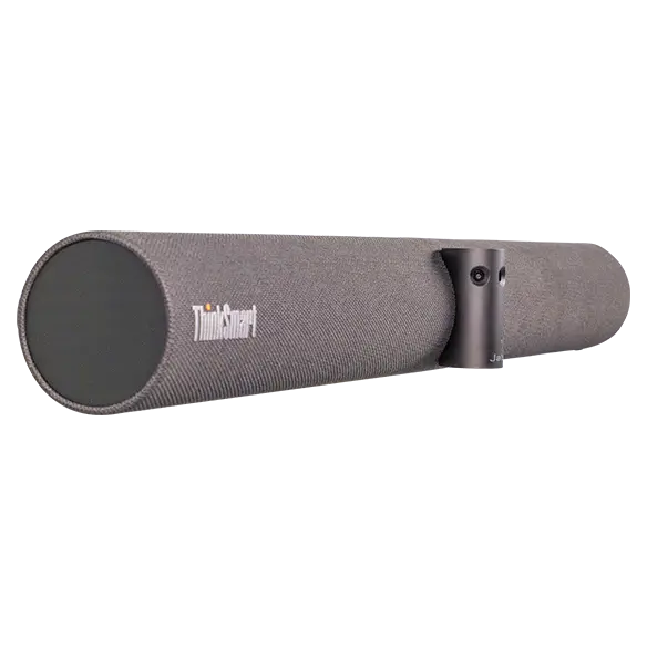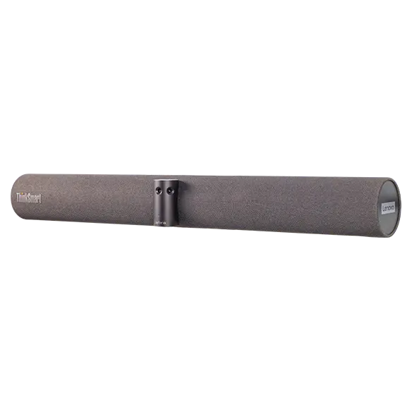 Front-close-up view of Lenovo ThinkSmart Bar 180 with a focus on its three-camera system.