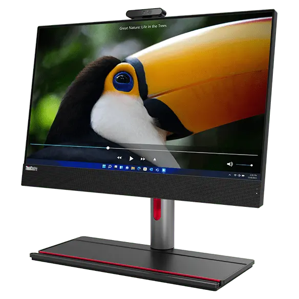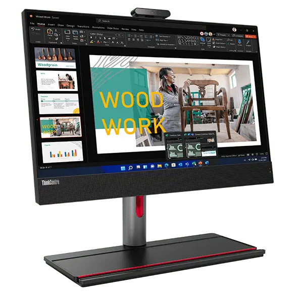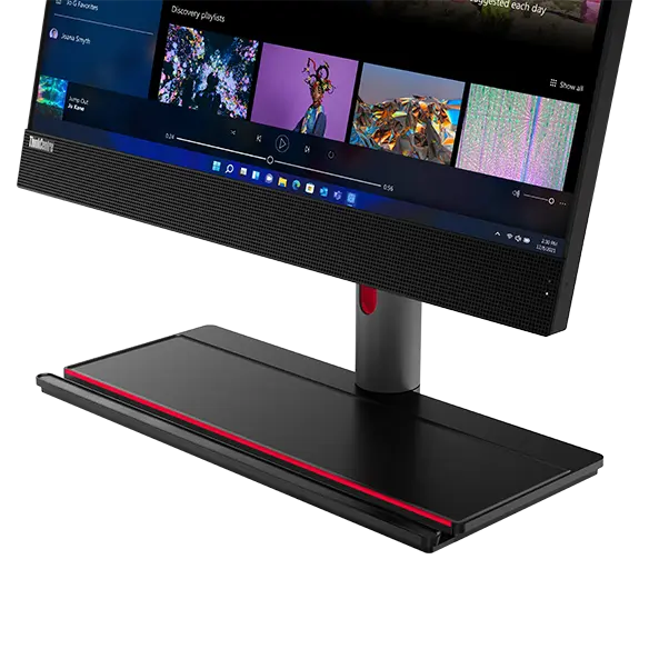 Front facing ThinkCentre M90a Gen 3 AIO on Full Function Monitor Stand, showing monitor