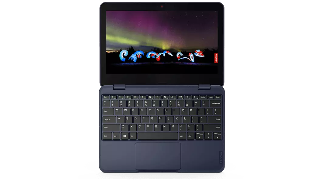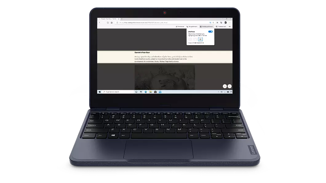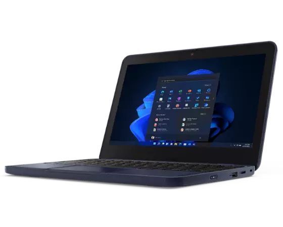 Lenovo 100w Gen 3 bärbar dator öppen 95 grader och något vinklad med bildskärm och portar på höger sida