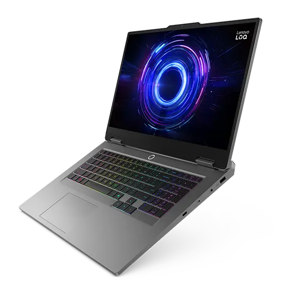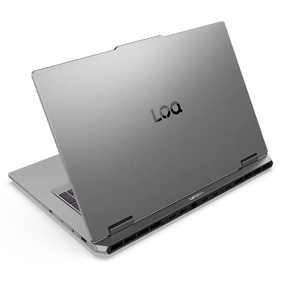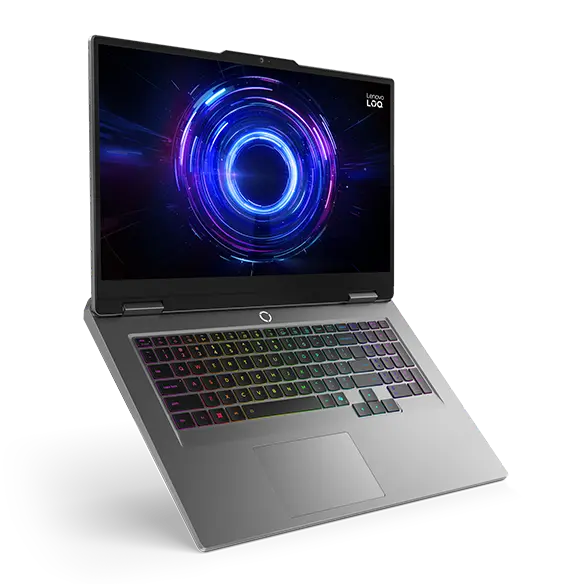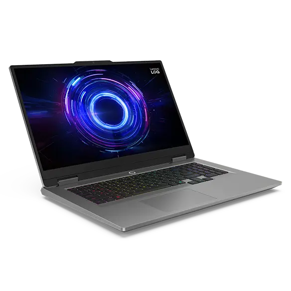 Angled view highlights slim profile, full keyboard, and high-performance build of the Lenovo LOQ 17IRX10.