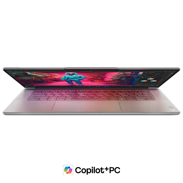 Front view of an opened Yoga Slim 7i Gen 9 Aura Edition (15″ Intel).